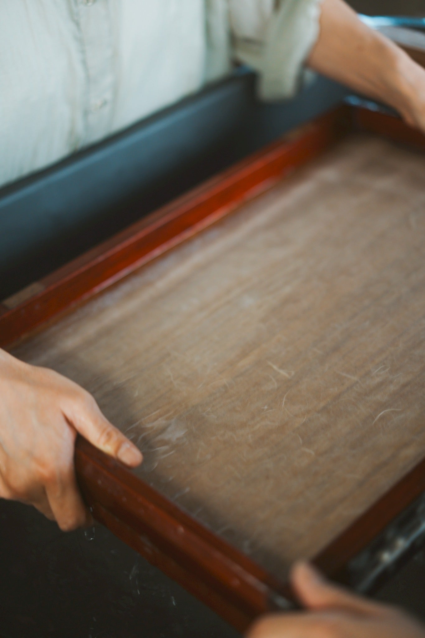 from preparing kōzo (paper mulberry) fibers to hand-scooping the paper,